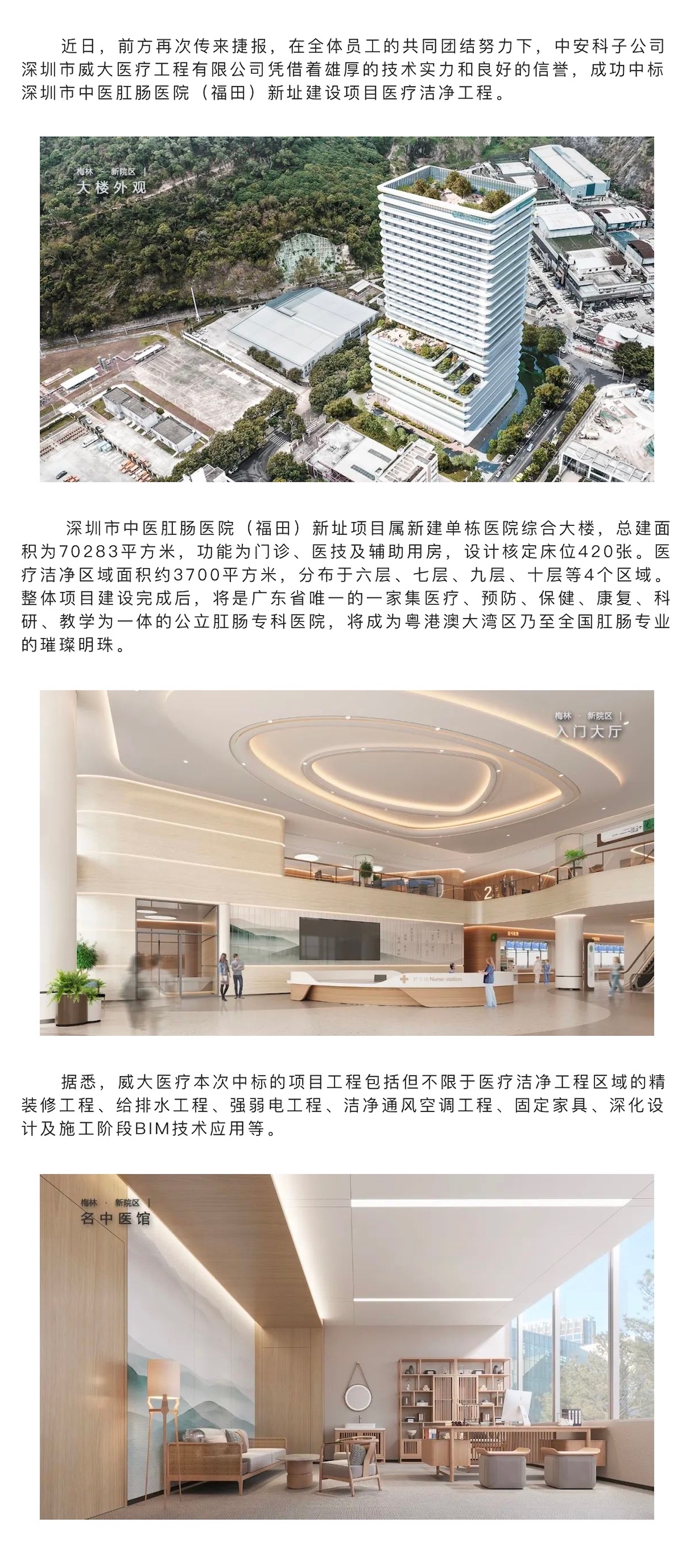 捷報頻傳|中安科子公司威大醫(yī)療中標深圳市中醫(yī)肛腸醫(yī)院(福田)新址建設項目醫(yī)療潔凈工程