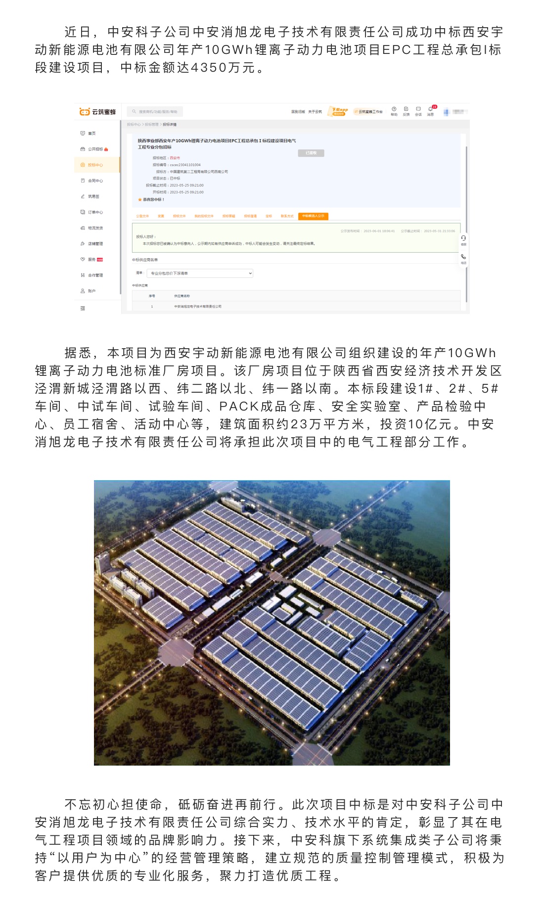 中標(biāo)喜報(bào)|中安科子公司中安消旭龍電子技術(shù)有限責(zé)任公司中標(biāo)西安宇動新能源電池有限公司年產(chǎn)10GWh鋰離子動力電池項(xiàng)目EPC工程總承包I標(biāo)段建設(shè)項(xiàng)目