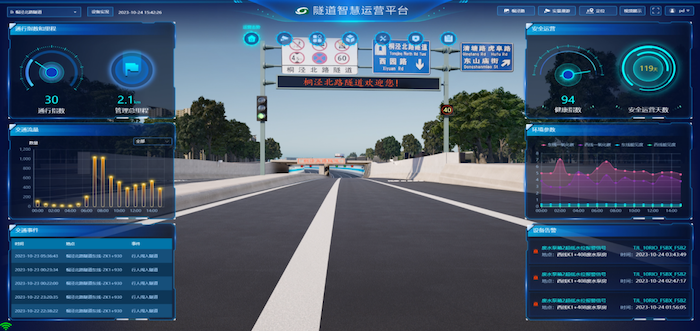本系統(tǒng)采用人工智能技術,將實體隧道與虛擬模型進行映射和交互,系統(tǒng)通過多維智能感知技術,利用各類傳感器和監(jiān)測設備,對隧道內(nèi)外的多維信息進行感知和采集,以實現(xiàn)對隧道環(huán)境、交通流量、安全狀況、結構監(jiān)測等多個方面的全面感知;系統(tǒng)采用數(shù)字孿生技術,對隧道進行數(shù)字化建模,以更加真實、直觀的方式呈現(xiàn)形狀和結構,以及隧道的狀態(tài)和運行情況。依托大數(shù)據(jù)分析技術,系統(tǒng)以任務管理為導向,貫穿整個生命周期,對設備、信息、人員、工單等進行跟蹤管理,有效提升管養(yǎng)效率;通過人工智能數(shù)據(jù)驅(qū)動模型,將隧道運行狀態(tài)的數(shù)據(jù)和模型結合起來,提供隧道管理和運營決策支持,為隧道運營管理的智能化、精細化、可視化及全生命周期管理提供了解決方案,極大地提升了隧道綜合管理效率和應急事件處置能力。