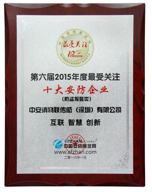 2016年03月29日,第六屆“思正杯”最受關(guān)注十大安防企業(yè)評(píng)選頒獎(jiǎng)盛典暨第二屆中國安防新產(chǎn)品/新技術(shù)研討會(huì)在杭州拉開序幕。中安消物聯(lián)傳感(深圳)有限公司(以下簡稱“中安消物聯(lián)傳感”)在本次活動(dòng)中榮獲“2015年度最受關(guān)注十大安防企業(yè)(防盜報(bào)警類)”稱號(hào)。
