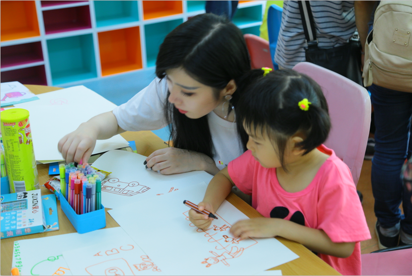 中安科愛心團(tuán)隊(duì)的志愿者們陪孩子們做各種手工活動(dòng)