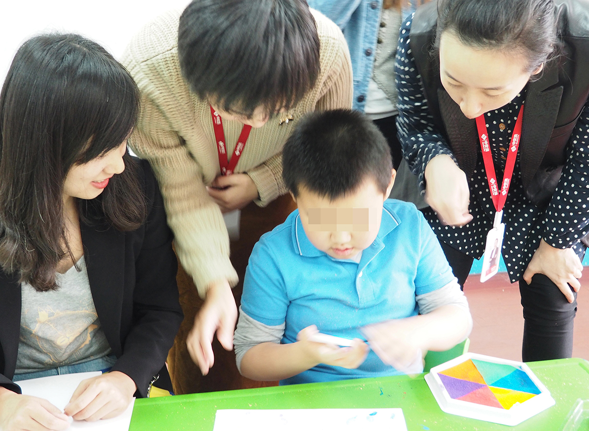 初次見到這些孩子,他們給愛心志愿者的印象是乖巧可愛,然而,經(jīng)過一對(duì)一的互動(dòng)交流之后,愛心志愿者們逐漸發(fā)現(xiàn)了孩子們不同尋常的特征,他們對(duì)志愿者講的繪畫方式充耳不聞,無法模仿志愿者用手在指定位置作畫,他們的語言能力不及同齡兒童,有些甚至不能清晰完整的說出一個(gè)詞語,他們雖然是同一院的小朋友,卻從未有過互動(dòng),更不會(huì)像其他幼兒園小朋友一樣嬉戲打鬧。