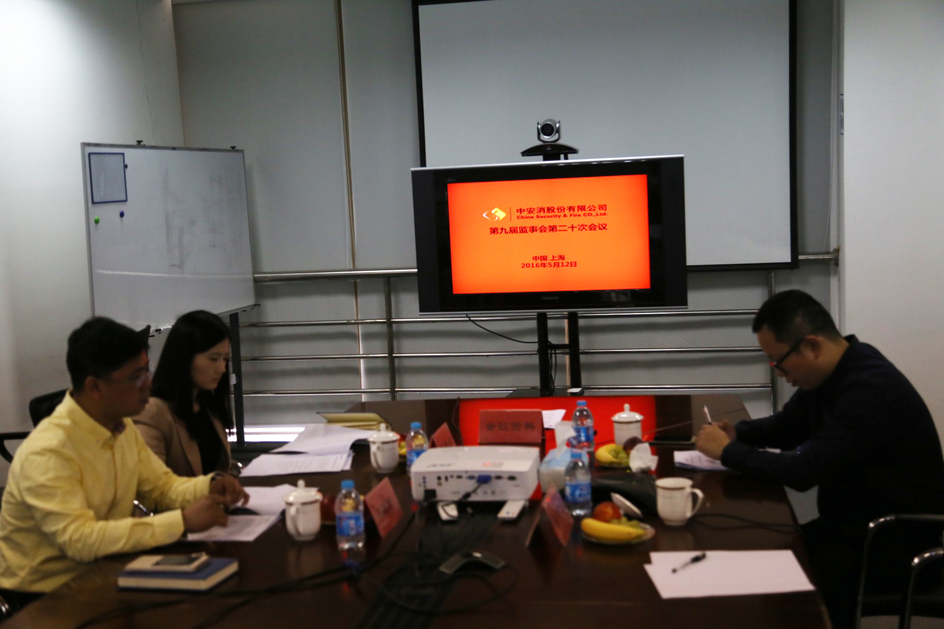 圖2,監(jiān)事會(huì)會(huì)議現(xiàn)場(chǎng),左排:監(jiān)事:吳展新(左二)、陳亞南(左一);董事會(huì)秘書付欣(右一)。