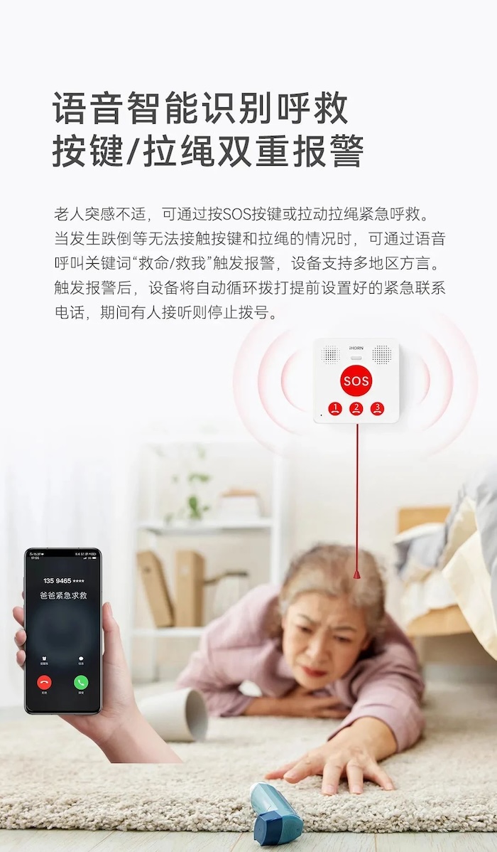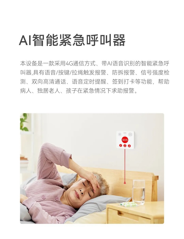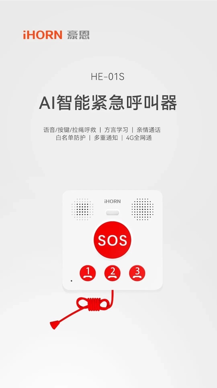 新品推介:中安科子公司豪恩AI智能緊急呼叫器,語音呼叫求助,救援更及時