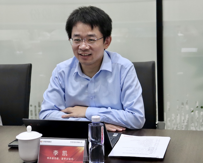 中安科常務(wù)副總裁、董事會(huì)秘書(shū)李凱對(duì)武昌區(qū)領(lǐng)導(dǎo)一行的到訪表示熱烈歡迎和感謝,并結(jié)合公司經(jīng)營(yíng)情況向在場(chǎng)領(lǐng)導(dǎo)匯報(bào)了企業(yè)總部落戶武昌的現(xiàn)狀及發(fā)展目標(biāo),希望與武昌區(qū)一起搭建合作平臺(tái),服務(wù)地方經(jīng)濟(jì)發(fā)展。